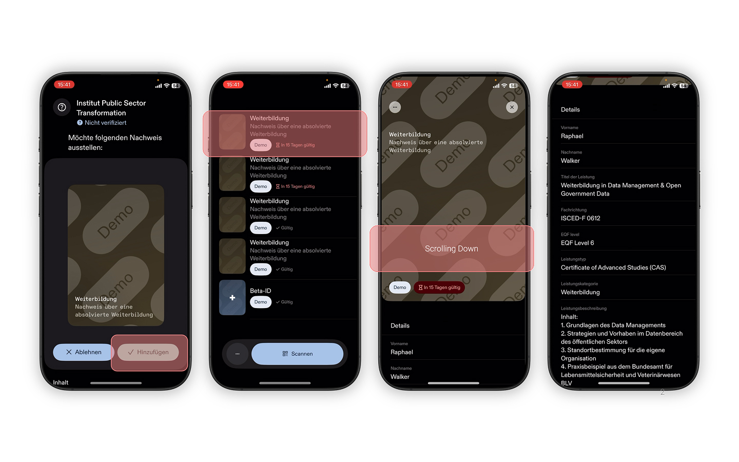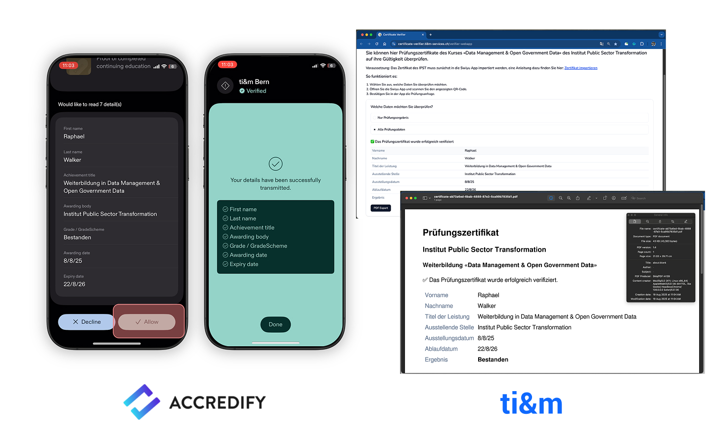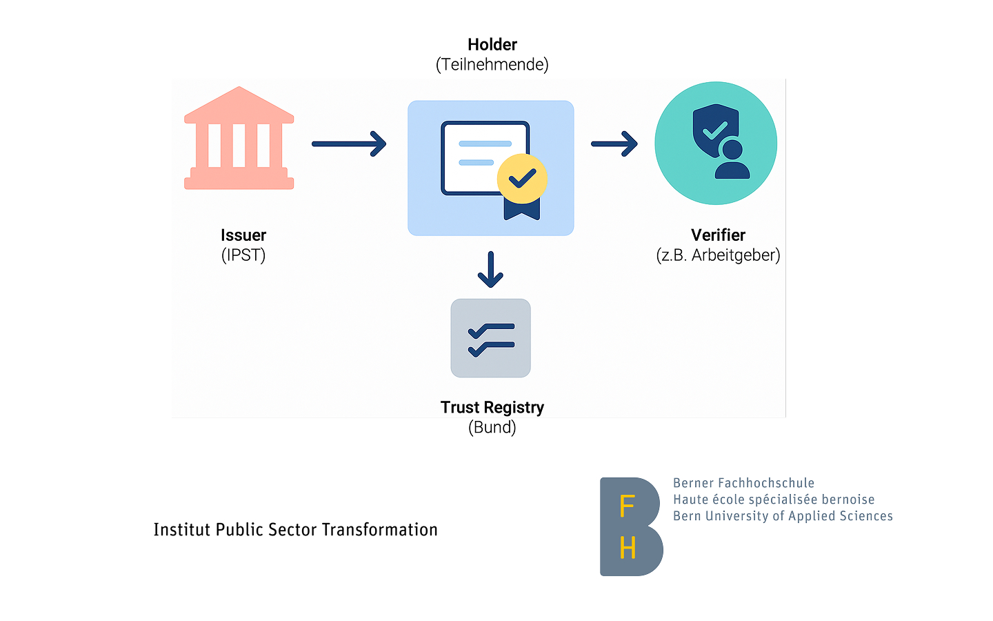 “With the POC Verifiable Credentials for our Data Management program, we demonstrated how the new E-ID trust infrastructure can be practically used. For graduates, it is a major benefit to store their continuing education certificate in the Swiyu wallet, keeping all data secure and always accessible.”– Prof. Dr. Matthias Stürmer Head of Institute for Public Sector Transformation