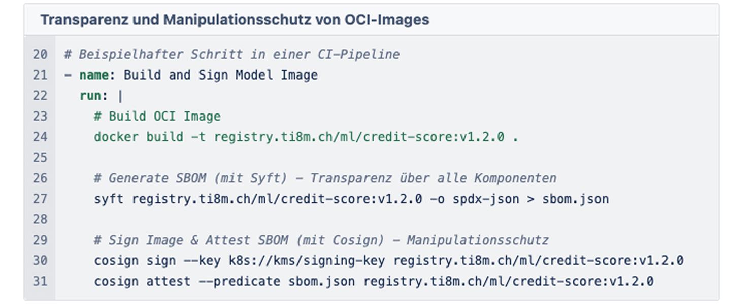 Why all this effort? Because the security officer in the Kubernetes cluster can now enforce a policy: “Only start containers that have been signed by the CI pipeline.” This protects against supply chain attacks and ensures that no untested model goes live “by mistake”.